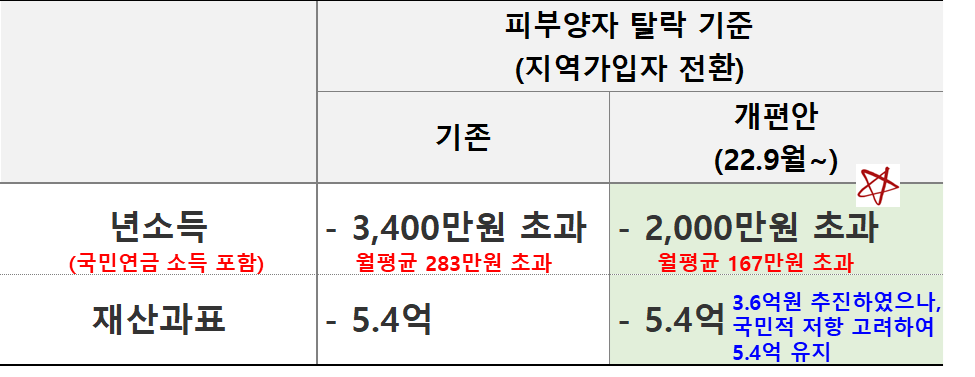 의료보험 지역가입자 전환 기준(피부양자 탈락 기준)