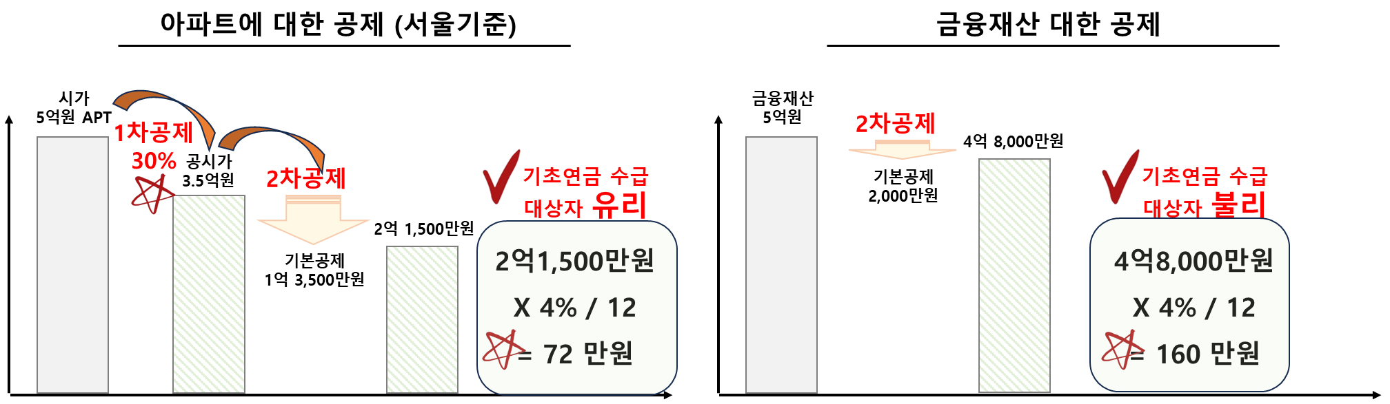 자가보유로 현재 시가 5억에 살고 있는 분이 있습니다. 그리고 동일하게 5억 원으로 자가 보유 없이 전세에 살고 계신 분이 있습니다. 이럴 경우 어떻게 될까요?