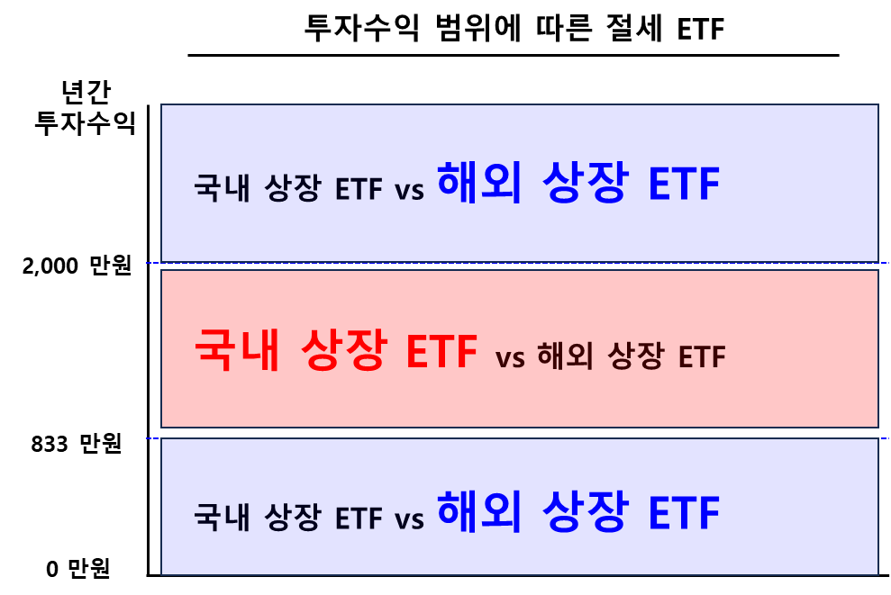 연간 투자 수익이 833만 원 이상이라면, 국내 상장 ETF에 투자하는 것이 유리하다.