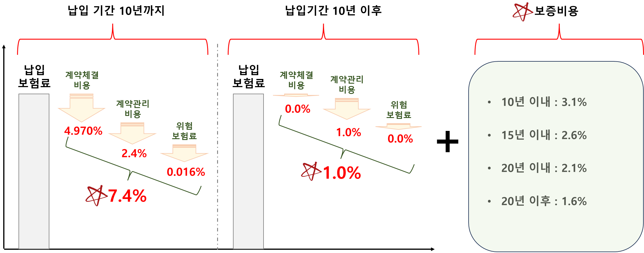 - 계약관리 비용 : 납입 원금의 2.4%를 매달 10년 동안 내야 합니다.