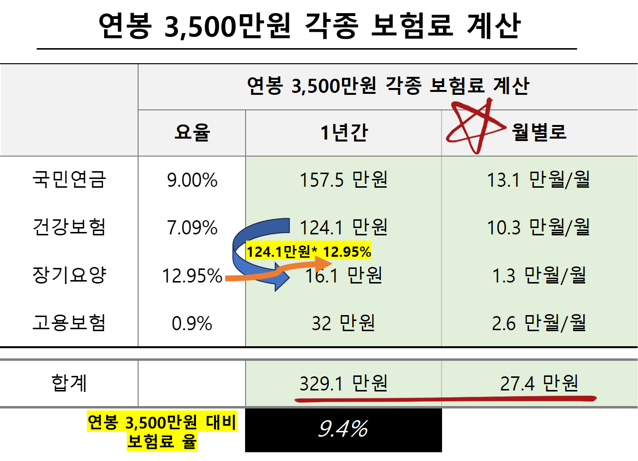 - '국민연금+건강보험료+장기요양보험료+ 고용보험료' 등 각종 보험료 329만 원
