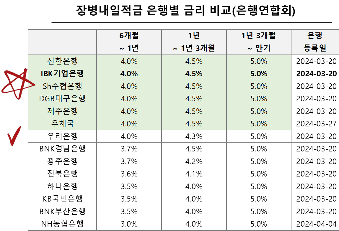 장병내일적금 은행별 금리 알아보기
