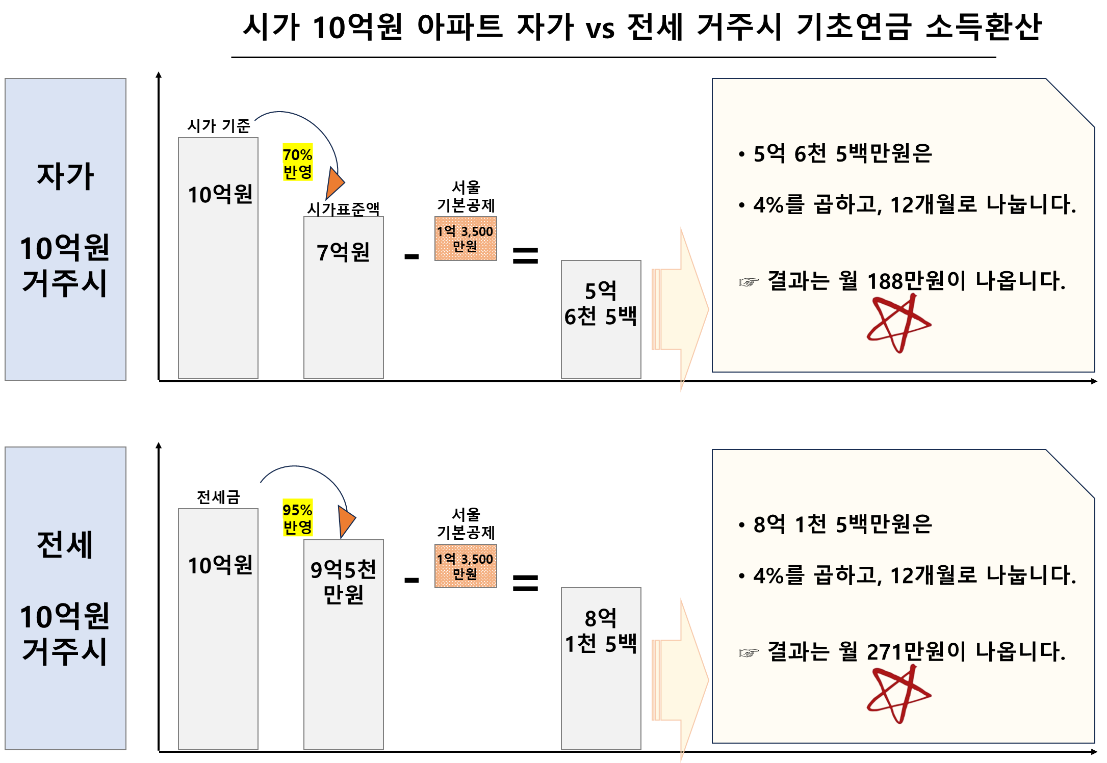 기초연금을 받기 위한 자가 vs 전세 비교 마무리